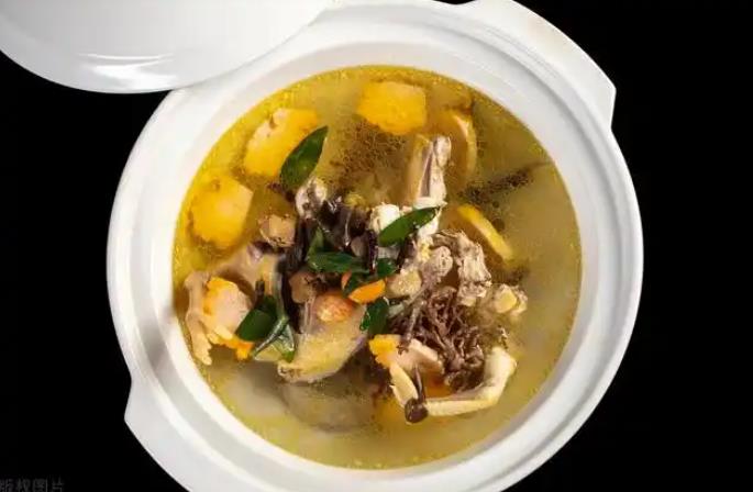 第三道是菌菇鸡汤。鸡肉肉质鲜嫩,营养丰富,是补充蛋白质的优质食材。各种菌菇如香菇、茶树菇、杏鲍菇等,含有多种氨基酸和矿物质,味道鲜美,能为汤增添浓郁的风味。