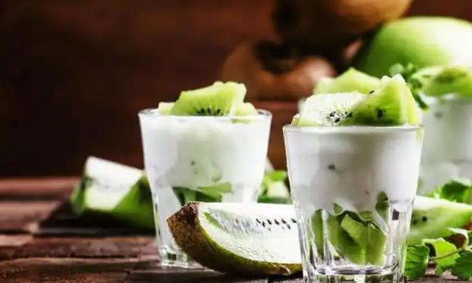 将猕猴桃块放入酸奶中,搅拌均匀即可食用。